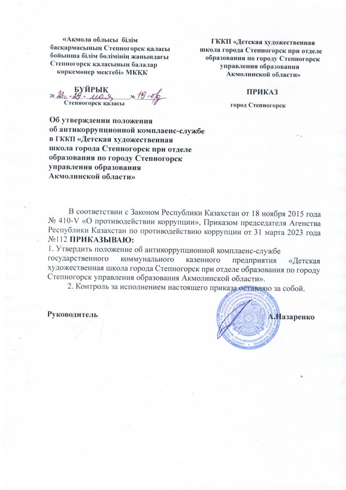 Государственное коммунальное  казенное предприятие "Детская художественная школа город Степногорск при отделе образования по городу Степногорск  управления образования Акмолинской области